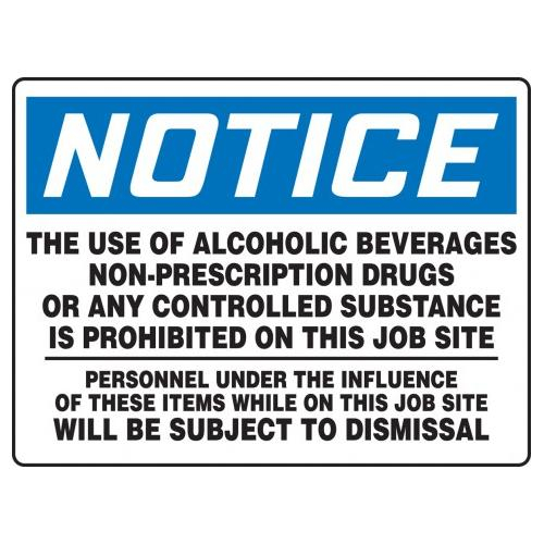 Order MADM859VP by Accuform OSHA Notice Safety Sign "Alcohol and Drugs Are..." - US Mega Store