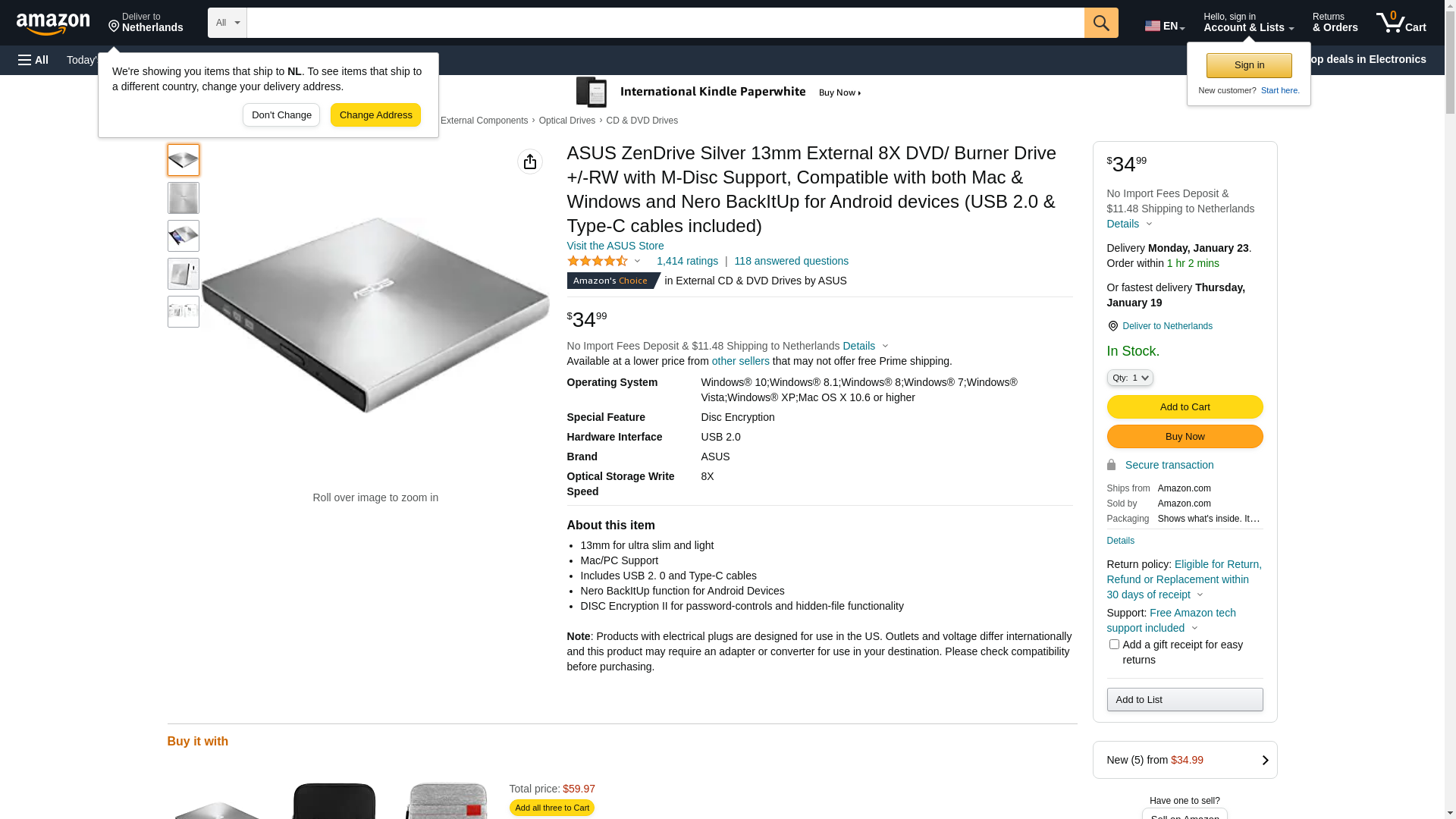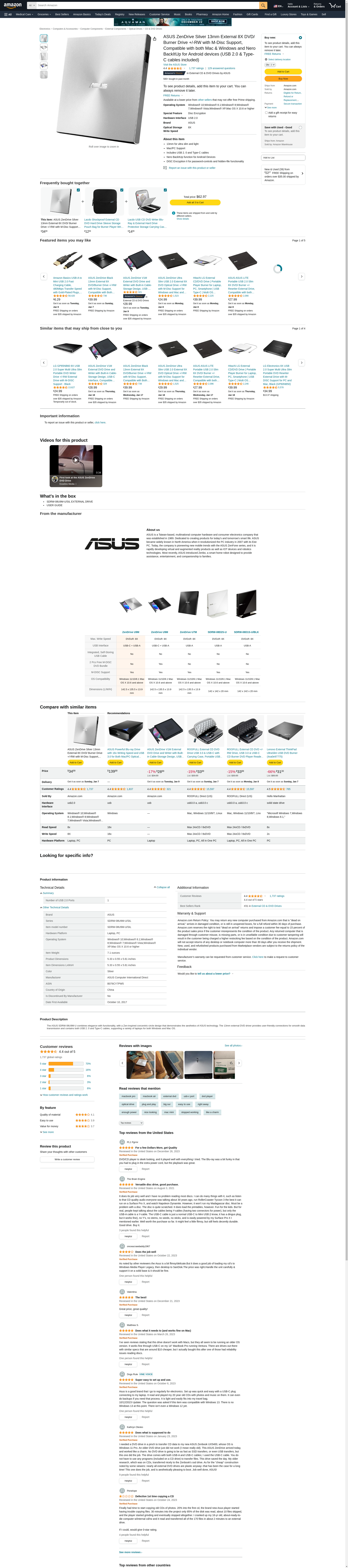 ASUS ZenDrive Silver 13mm External 8X DVD/ Burner Drive +/-RW with M-Disc Support, Compatible with both Mac & Windows and Nero BackItUp for Android devices (USB 2.0 & Type-C cables included)