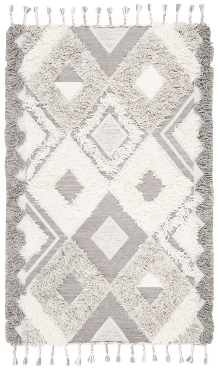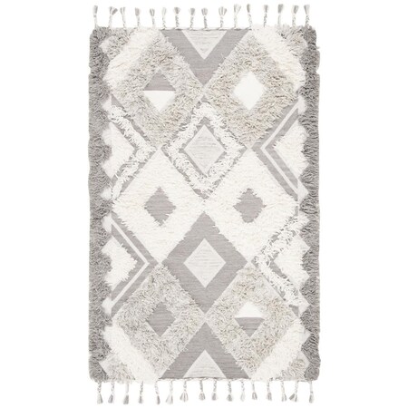 Kenya Bohemian Rectangle Hand Knotted RugsGrey & Ivory 6 x 9 ft.