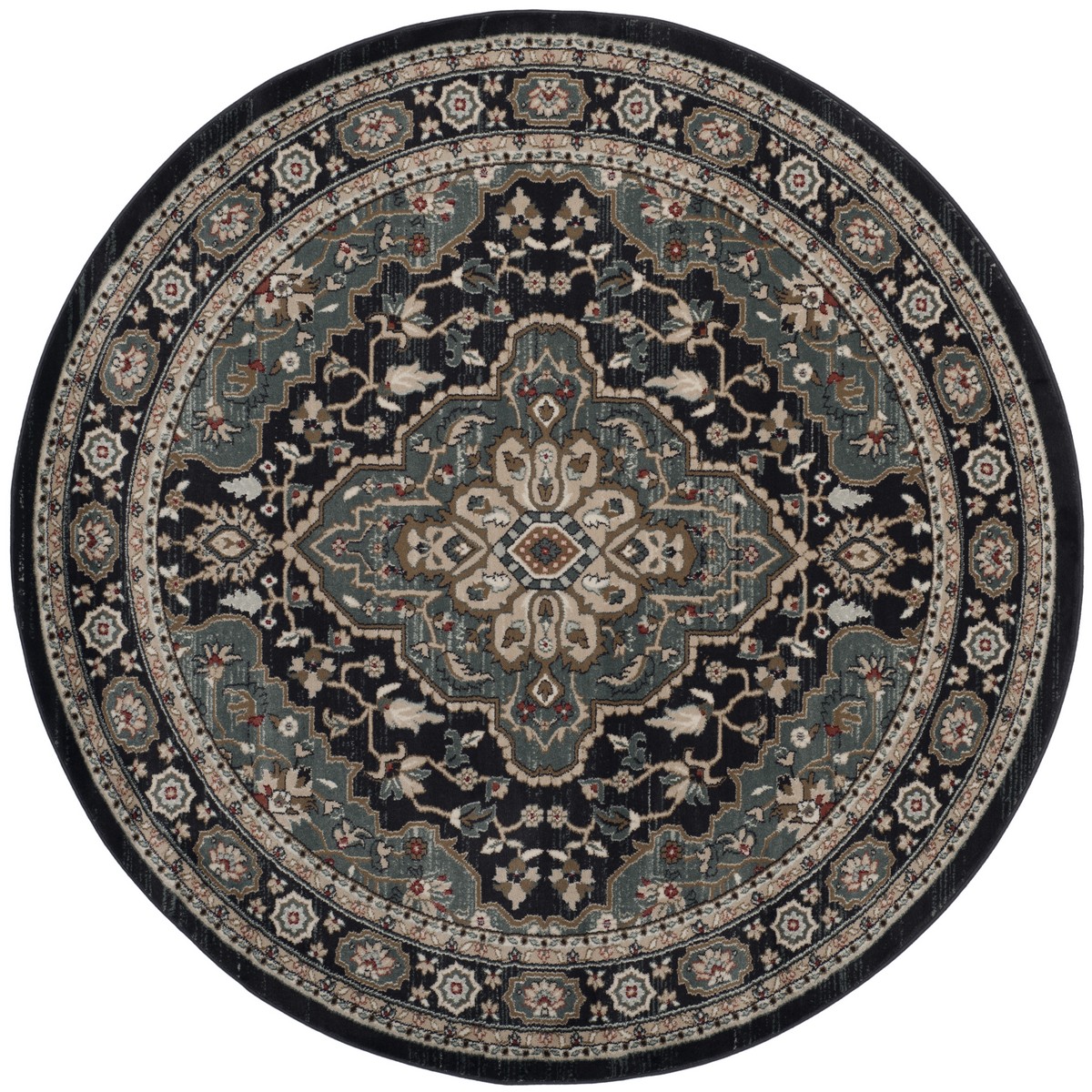 Safavieh LNH338C-7R Lyndhurst Round Area Rug, Anthracite & Teal - 7 x 7 ft.