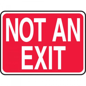 10" x 14" Aluminum Sign: "Not an Exit" This red sign is an identifier that the corresponding door does not lead to an exit. Aluminum (VA) Aluminum withstands wash downs, harsh elements, abusive conditions, and features good chemical, abrasion, and impact resistance. Aluminum is excellent for indoor and outdoor usage, making it ideal for a wide variety of industrial-strength applications. All Aluminum signs feature Accuform's TedLex liquid-based UV-protective coating, included at no charge. TedLex is perfect for indoor and outdoor use, prevents fading, and resists chemicals, abuse, and graffiti. Aluminum signs provide the strength of metal, yet never rust. Aluminum withstands wash downs, harsh elements, and abuse.