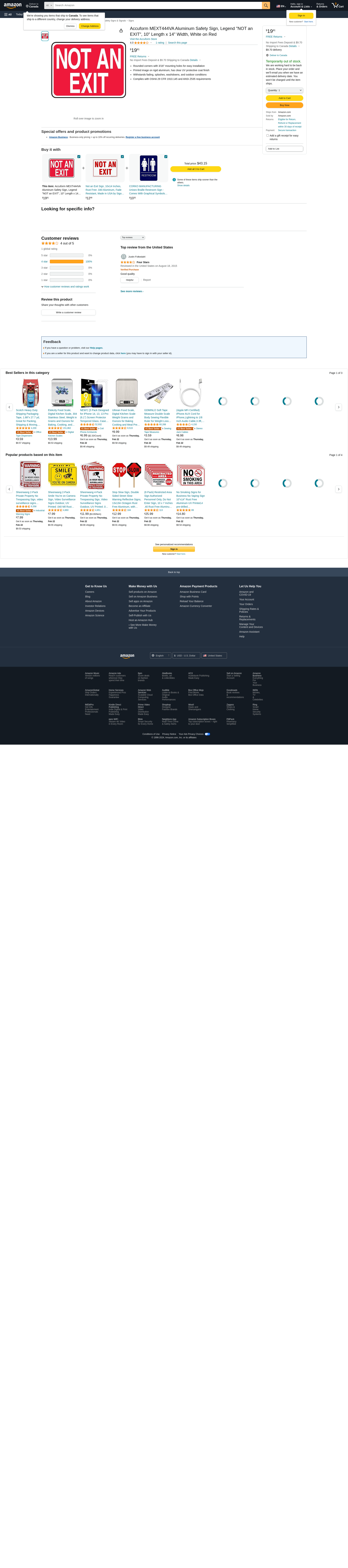 Order MEXT444VA by Accuform 10" x 14" Aluminum Sign: "Not an Exit" - US Mega Store