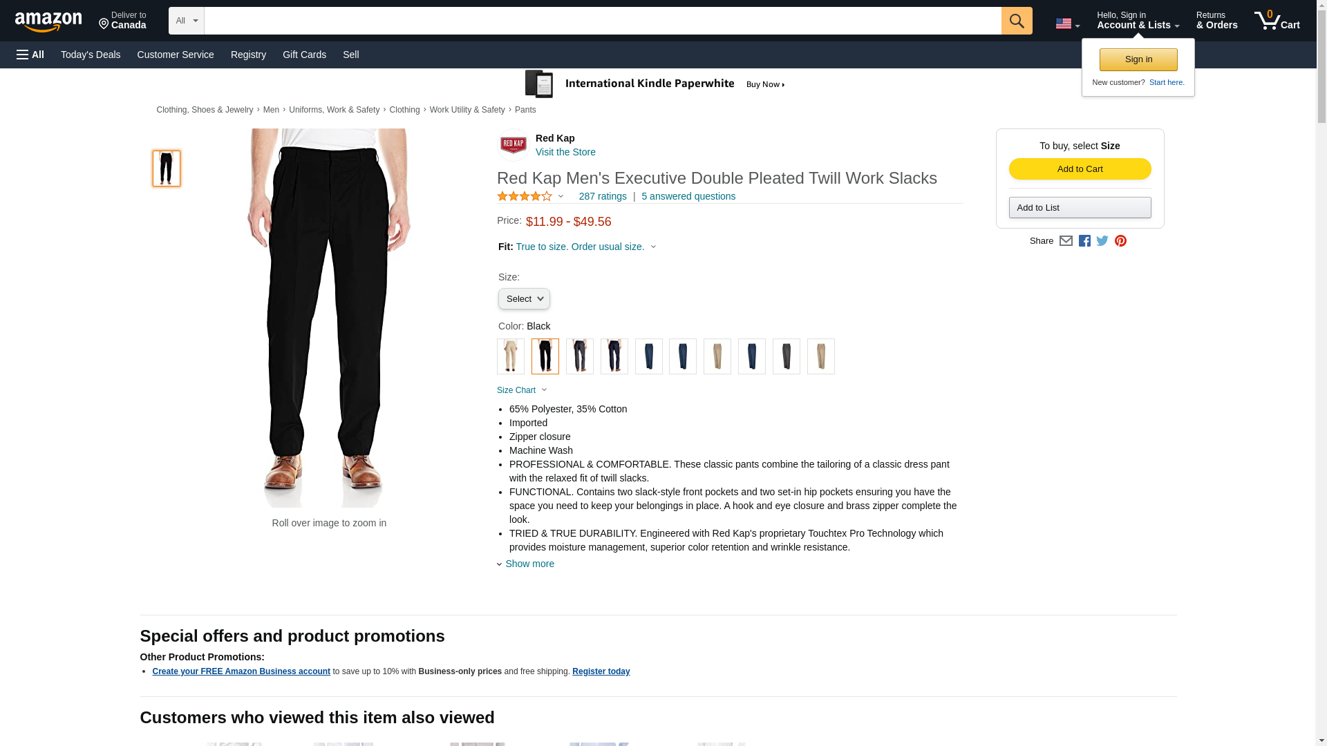 Red Kap Men's Pleated Twill Slack - Red Kap PT38BK-35-37U EA - Betty Mills