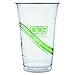 Go green with 100% all-natural, compostable PLA corn-based plastic cups. GreenStripe printing informs customers of your preference for sustainable resources. Taper-down design with top ridges helps improve grip, minimizing the potential for dropped beverages and attendant spills. Compatible flat- and dome-lid options (sold separately) allow you to use the same cup type for both cold and frozen drinks.