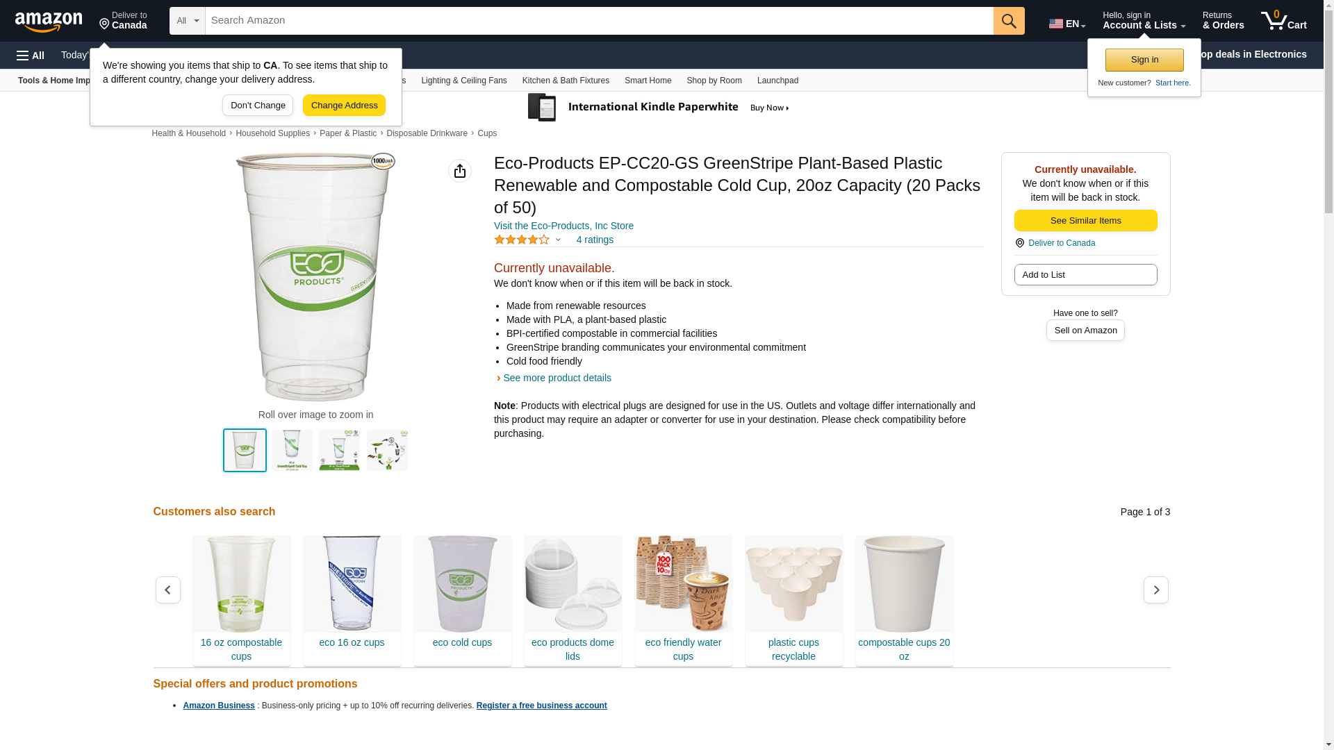 Enjoy Eco-Products 20 oz GreenStripe Cold Cup - Case of 1000 every day at <br />these amazing prices! 20 oz. GreenStripe Cold Cup The cup that makes <br />customers happy. The 20 oz compostable cold cup has many uses. Smoothies, <br />cold coffee and other beverages are perfect candidates for these large cold <br />cups. Item Code: EP-CC20-GS Highlights: If you order this size, you may <br />receive the previous design or the new design. For those with thirst and a <br />dream of a greener world. Use lid EP-FLCC, EP-DLCC or EP-DLCC-NH (Please <br />note: Description is informational only. Always read the product label <br />before use and check with your health professional before using this <br />product)