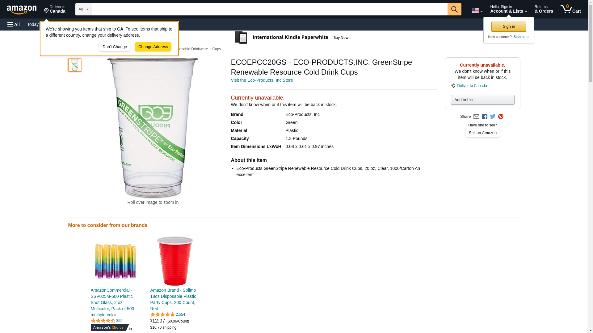 ECOEPCC20GS - ECO-PRODUCTS,INC. GreenStripe Renewable Resource Cold Drink Cups