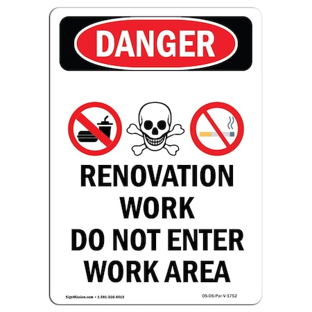 OSHA Danger Sign, Renovation Work Do, 18in X 12in Aluminum
