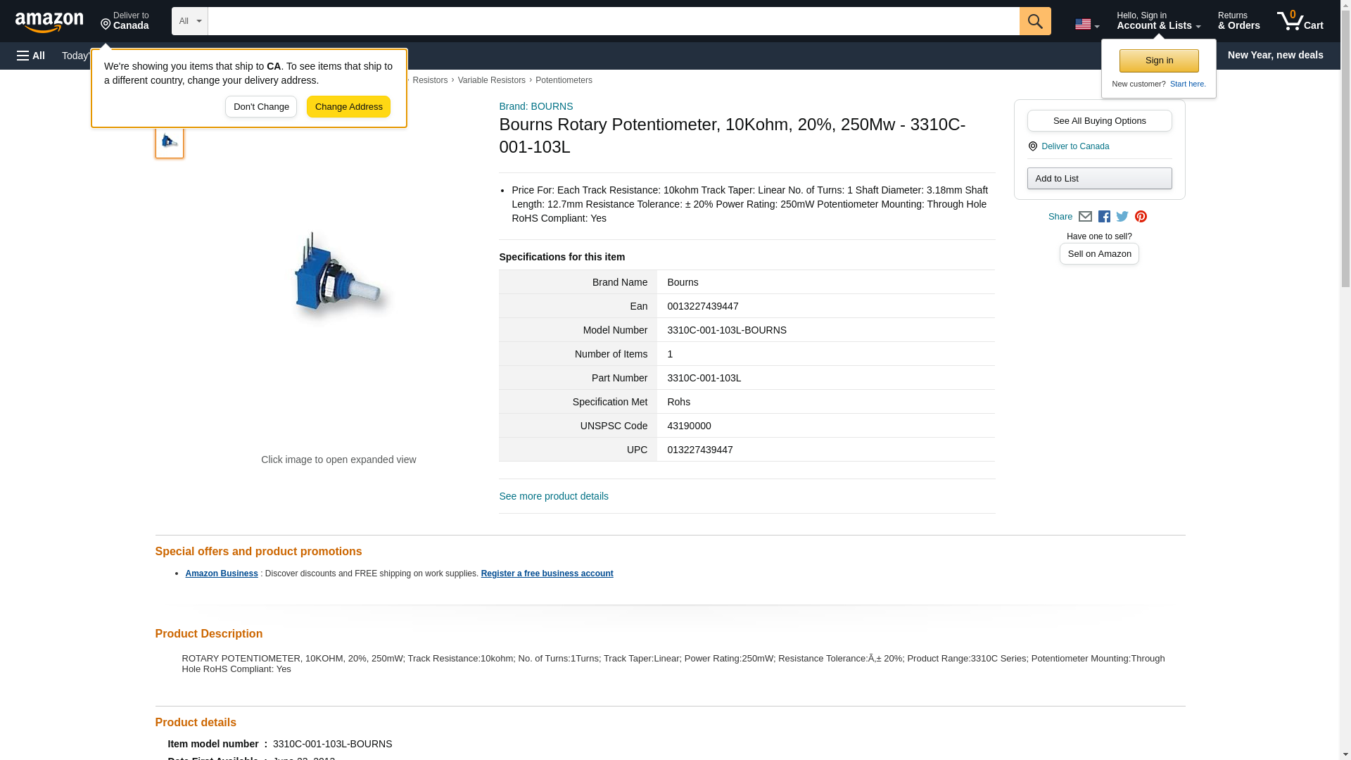 | 3310C-001-103L | 1 | 294 | 1 | 1 @ $3.35, 5 @ $2.69, 25 @ $2.40, 50 @ $2.25, 100 @ $2.19 | |