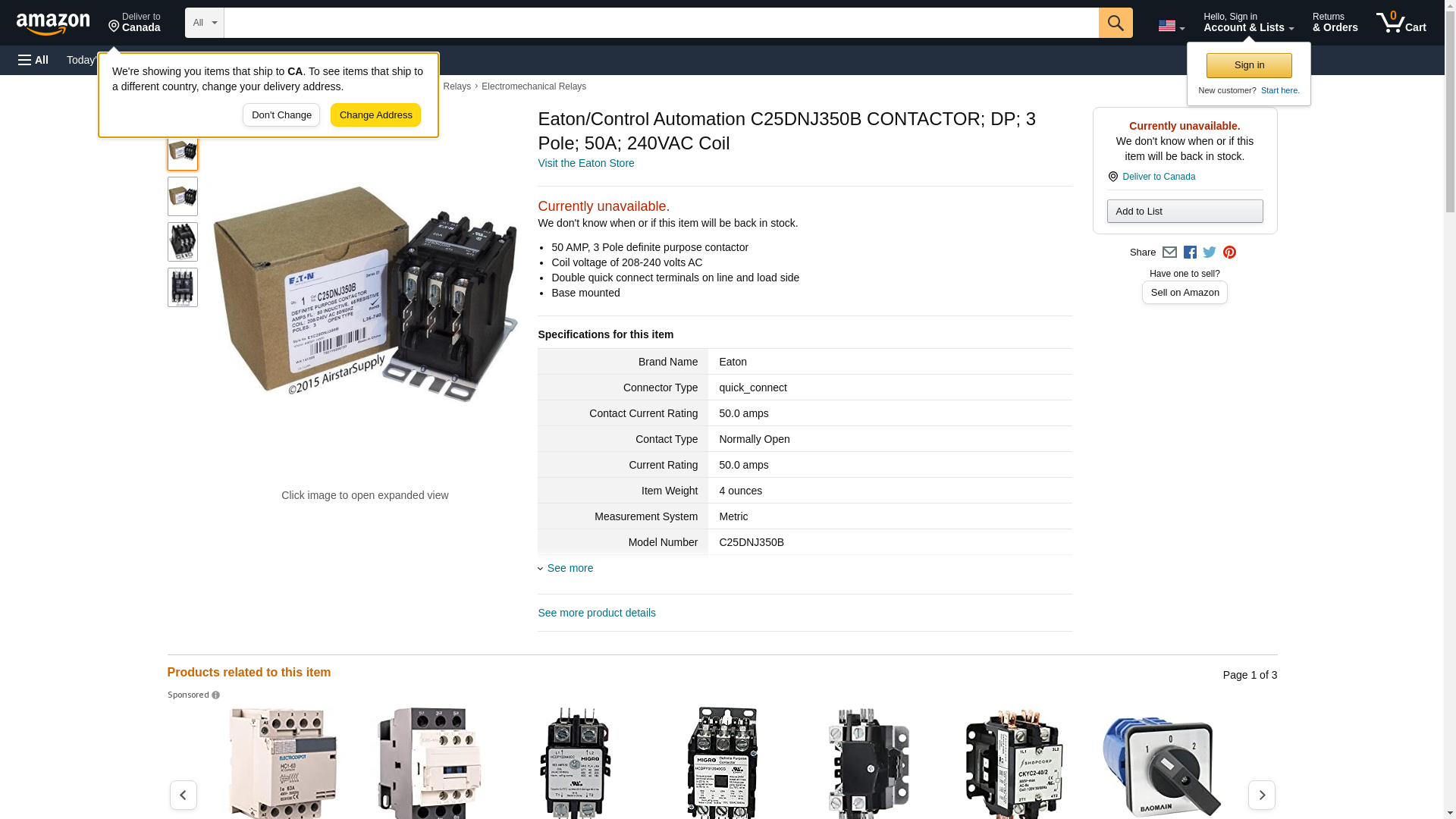 Eaton/Control Automation C25DNJ350B CONTACTOR; DP; 3 Pole; 50A; 240VAC Coil