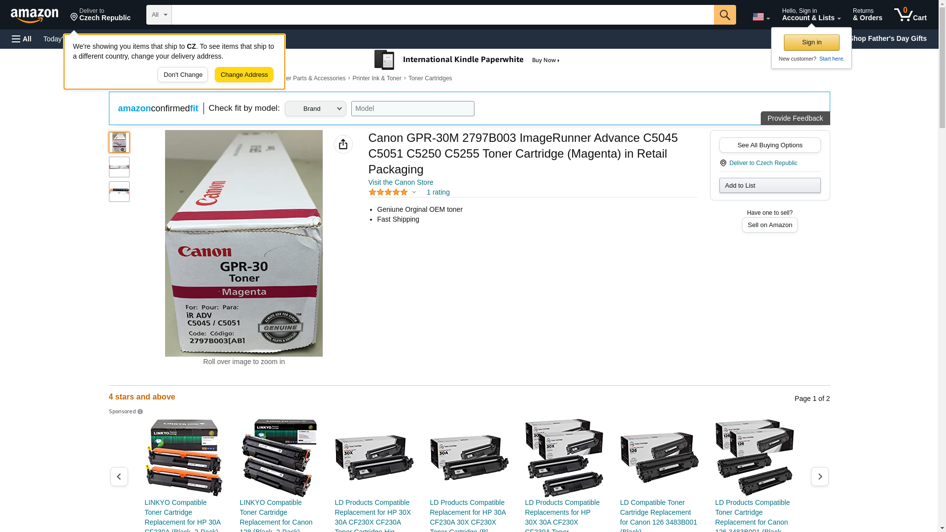 Click images to enlarge: List Price $ 184.5Manufacturers Item number: 2797B003AATONER,GPR30 IR C5045,MGGenuine OEM quality. Dependable and reliable. Clean and simple installation. Device Types: Copier; Color(s): Magenta; Page-Yield: 38000; Supply Type: Toner.Package Includes Manufactured by Canon Product SpecificsSold as EachTo order a carton, order 6 EachItem may be returned for 30 days from date of purchaseUPS ShippableAssembly Required: NoMade from Recycled Material: NoItem Weight: 1.52 lbs.Carton Weight: 13 lbs.Material Safety Data Sheet Available here Print;imageRUNNER C5045, C5051; Magenta; Consumables; Imaging; Reproduction; Technology; Publishing