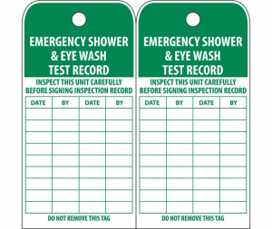 - Safety tags are stored in a durable, tab-lock dispenser box designed for any facility or job site that needs to inspect the emergency shower and eye wash station