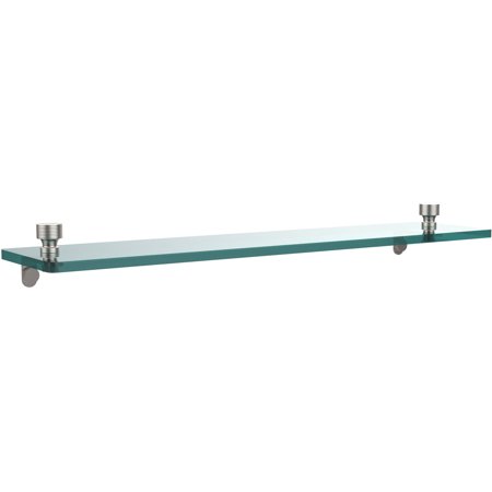 <br /> <b>Foxtrot 22" Glass Vanity Shelf with Beveled Edges:</b> <ul> <li>Built specifically for your order</li> <li>Contemporary 1-1/2" x 1-1/2" knob</li> <li>Made with 3/8" thick tempered glass for safety and strength</li> <li>Solid brass fixtures with mounting hardware included for easy installation</li> <li>Satin nickel, a lightly brushed warm grey metallic look that helps resist fingerprints</li> <li>Glass dimensions: 22" x 5"</li> </ul>