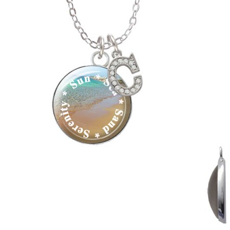 Silver Tone Domed Sun Sea Sand Serenity - C - Crystal Initial Sophia Necklace. Silver Tone Domed Sun Sea Sand Serenity is approximately 0.9 x 0.7 x 0.2 inches (HxWxD) including loop. High quality image of beach printed on paper sealed under a glass dome in a metal frame. Wonderful gift for beach lovers. 1.5mm Silver Tone Dainty Cable Chain Necklace: 18 inches with 1 inch extender chain. Crystal Initial is approximately 0.38 Inches long not including loop. Lobster Claw Clasp. Dainty and delicate, the Sophia Collection is about wearing an expression of what she cherishes, with just a little bling to brighten her day. Please notify us if you would like an initial not listed here. We are a family owned company in the U.S.A since 1977. PLEASE NOTE: Our products are lead safe, but are not intended for children 14 years and younger.