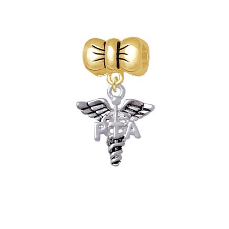 Silver Tone Caduceus - PTA - Gold Tone Bow Charm Bead Hanger. Silver Tone, hand enameled charms. Charm size is approx. 0.741 x 0.7 x 0.13 inches (HxWxD) including loop. Charm Hanger Bead is approx. 11x13x8 mm (HxWxD) Hole size 5.5 mm. Our Charm Beads are compatible with most Charm Bead Bracelets. Also makes a great charms pendant. Featured charms is an exclusive Delight & Co. design. We are a family owned company for over 35 years in the U.S.A. PLEASE NOTE: Our products are lead safe, but are not intended for children 14 years and younger.