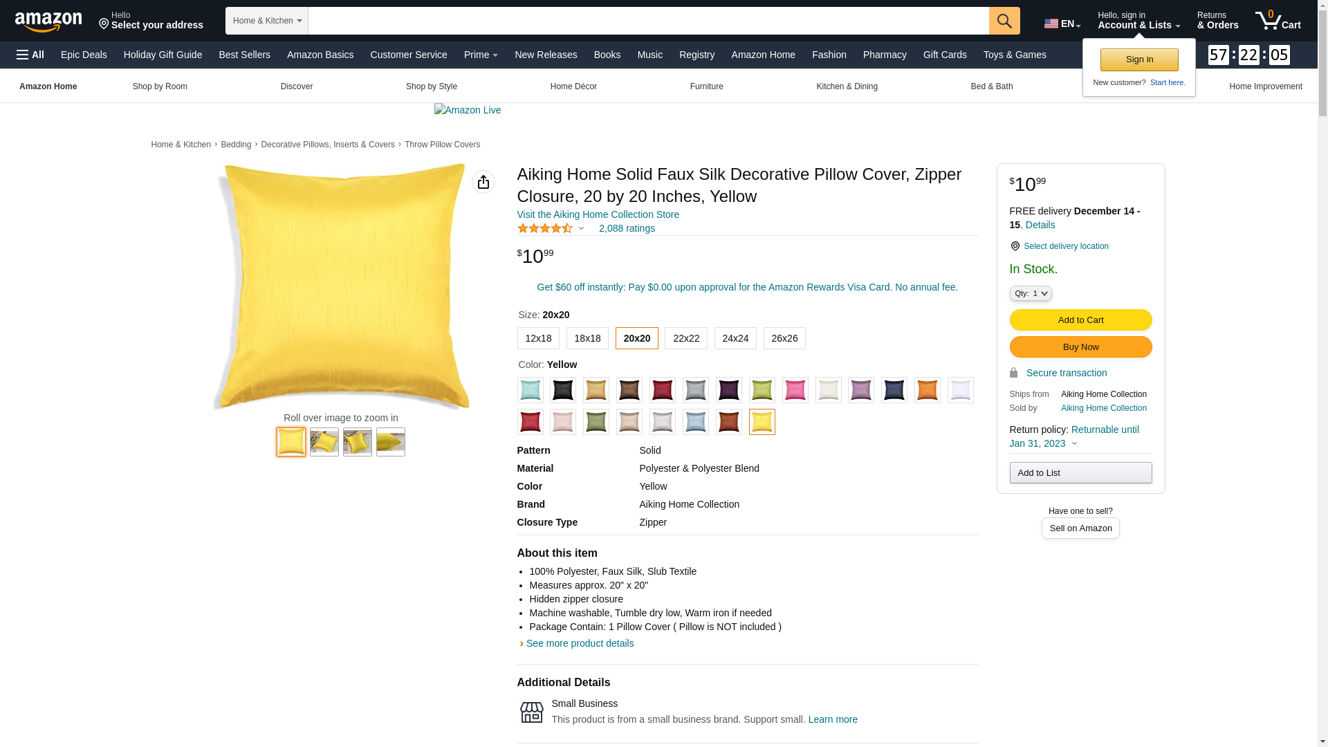 <b>Solid faux silk fabric</b><br>Faux silk fabric is made from 100-percent polyester, which is a man-made product. This fabric also has a beautiful sheen and a nice weight, it can give any room an elegant look. Perfect for the decor of your home, office, car, and any special event, etc<br><br><b>Product Feature</b><br>100% Polyester, Reverses to self<br>Slub textile, lightweight, thin, durable and easy to care<br>Double stitching – Make your pillow luxury and keep your pillow stay in place<br>Hidden zipper closure - Easy to install and remove for laundering<br>Over 20 colored - Easy to match your decors<br><br><b>Package</b><br>( Pack of 1 ) *** pillow is NOT included ***<br><br><b>Care Instructions</b><br>Machine wash cold with like colors<br>Gently cycle only, No Bleach<br>Tumble dry low<br>Warm iron if needed<br><br><b>Note</b><br>All dimensions are measured manually with deviation ranged at 0.5 inches<br>The product color may slightly differ due to different monitors<br><br><b>Made in the USA and Imported by Aiking Home Collection</b>