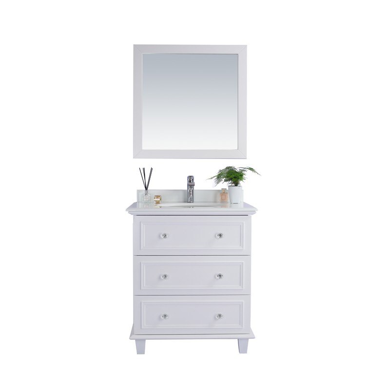 Luna - 30 - White Cabinet With Pure White Phoenix Stone Countertop - Laviva 313DVN-30W-PW