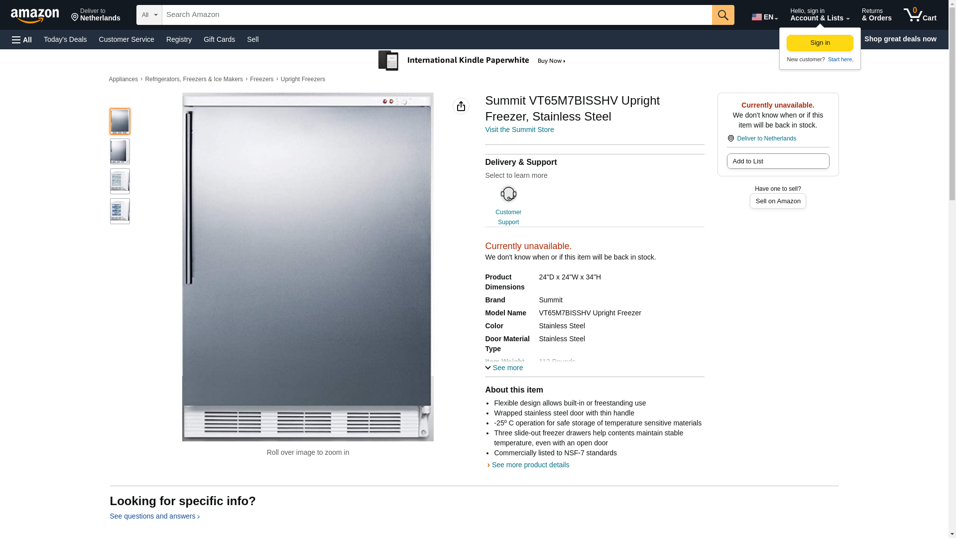 Summit VT65M7BISSHV Upright Freezer, Stainless Steel