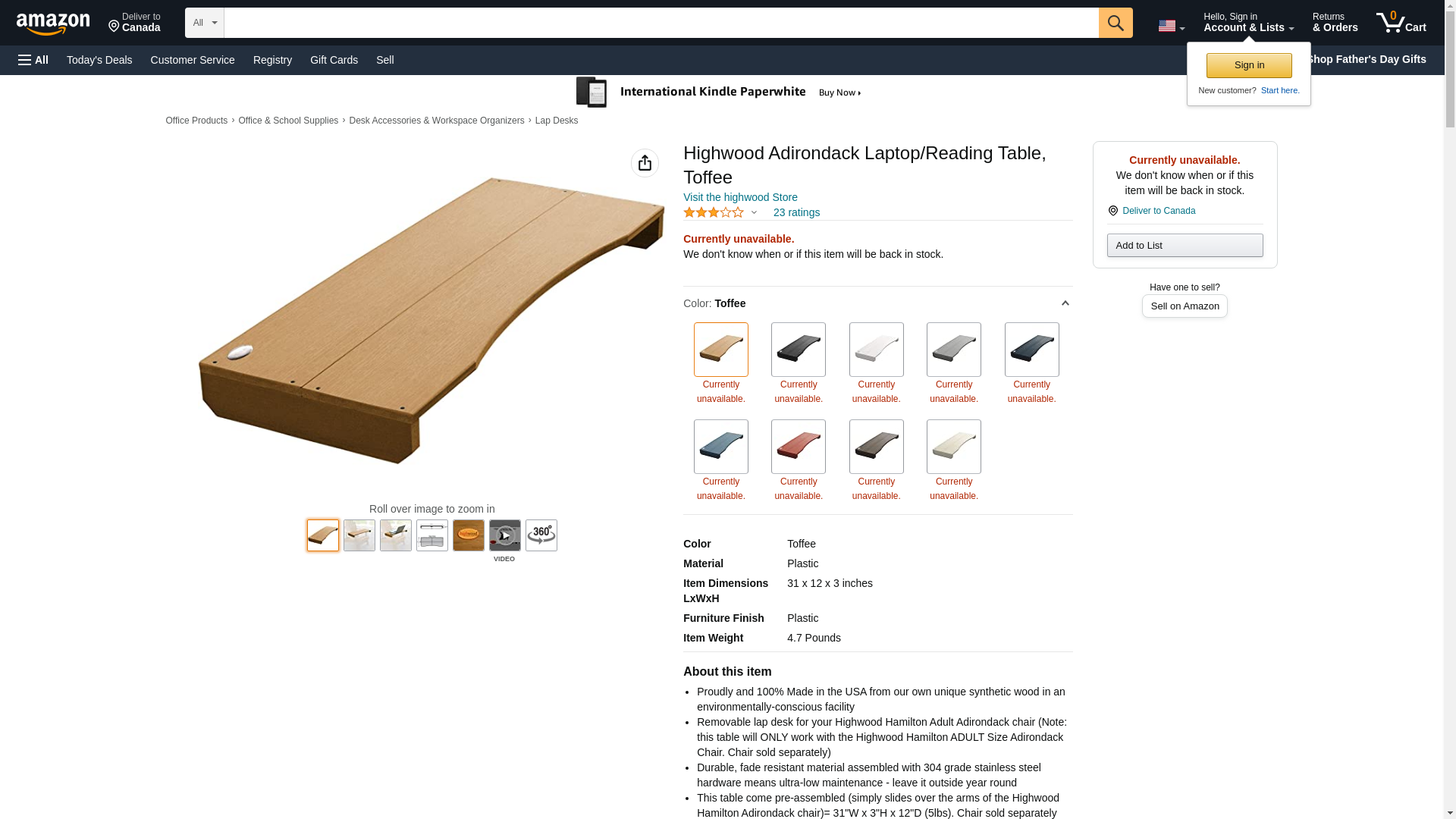 Highwood AD-LAPT1-TFE Adirondack Laptop/Reading Table, Toffee