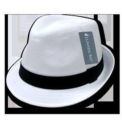 Decky 553-WHT-BLK-07 Basic Poly Woven Fedora - White & Black, Large & Extra Large