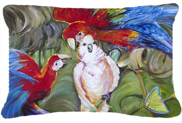 Caroline's Treasures JMK1018PW1216 Menage-a-Trois Parrots Canvas Fabric Decorative Pillow, 12H x16W, Multicolor