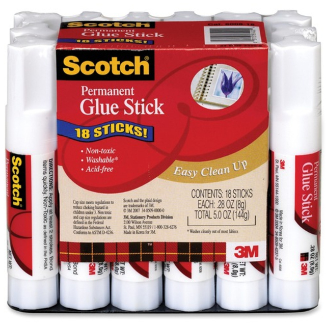 Scotch 600818 Permanent Glue Stick.28 oz, 18/Pack