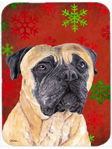 Carolines Treasures SC9425LCB Mastiff Red And Green Snowflakes Holiday Christmas Glass Cutting Board - Large