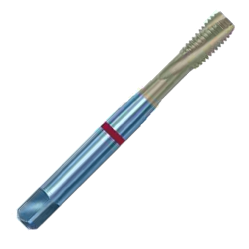 4-48 Red Ring Spiral Flute Semi-Bottoming DIN Length/ANSI Shank Tap, HSS-E-PM (PM Cobalt), H2/H3, TiN Coated Type: Red Ring,Number of Flutes: 3,Hole Type :Blind Hole 56mm Overall Length, 0.1410\