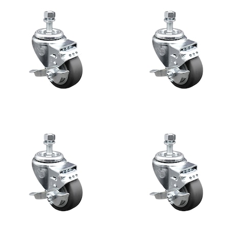 3.5 Inch SS Thermoplastic Rubber Swivel ? Inch Threaded Stem Caster Set Brake
