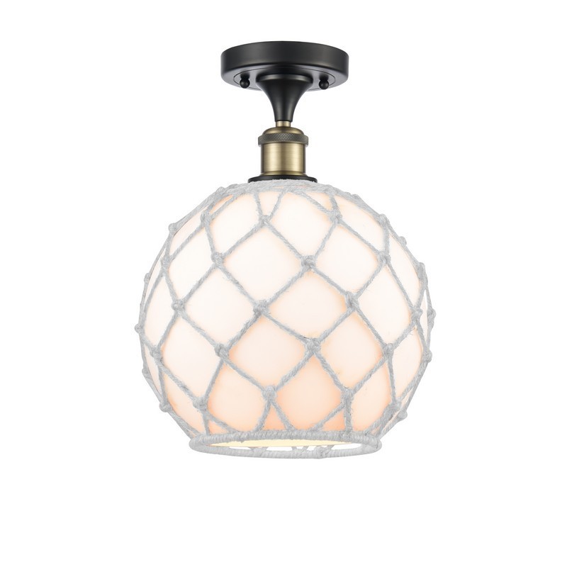 Innovations 516-1C-BAB-G121-10RW-LED Large Farmhouse Rope 1 Light Semi-Flush Mount Part of The Ballston Collection, Black Antique Brass