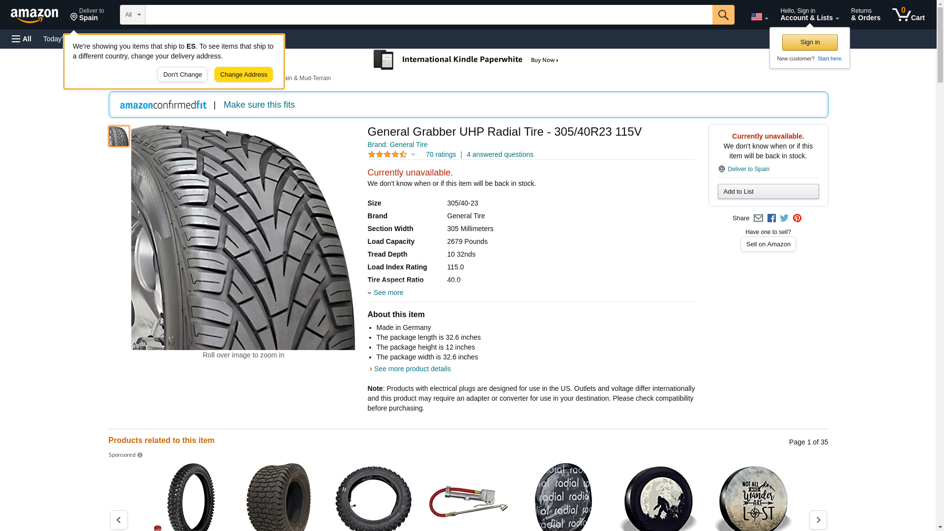 - (1) One 305/40R23XL General Grabber UHP 15477870000 Tire!