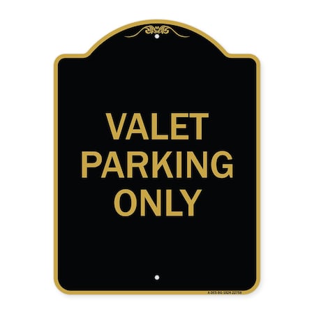 Designer Series Sign-Valet Parking Only, Black & Gold Aluminum Architectural Sign