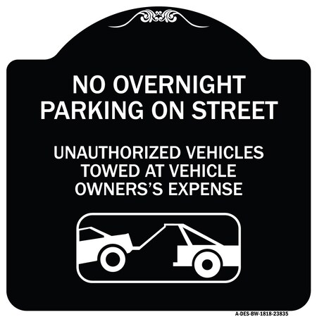 No Overnight Parking on Street Unauthorized Vehicles Towed at Vehicle Owners Expense Aluminum Sign