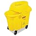 The Rubbermaid Commercial WaveBrake Dual Water Downward Down Press Mop Bucket with Wringer is a mop system that reduces splashing, which means a safer environment, cleaner floors, and improved productivity. The combo includes a 35-quart mop bucket with molded-in wave baffles to reduce splashing and dual compartments to keep clean and dirty water separate, graduated marks for measuring contents, and a down press mop wringer, tested to exceed 50,000 wringing cycles, that includes a tubular steel arm with a contoured handle for better grip. The bucket and wringer are made from structural web-molded plastic for better strength-to-weight ratio than standard injection-molded plastic. This mop bucket with wringer is suitable for commercial and industrial applications. The mop bucket rolls on 4 non-marking casters for mobility, and has a convenient foot pedal release for no-lift emptying. Capacity Range (Volume) [Max]: 35 qt; Material(s): Plastic; Color(s): Yellow; Wringer: Strainer.