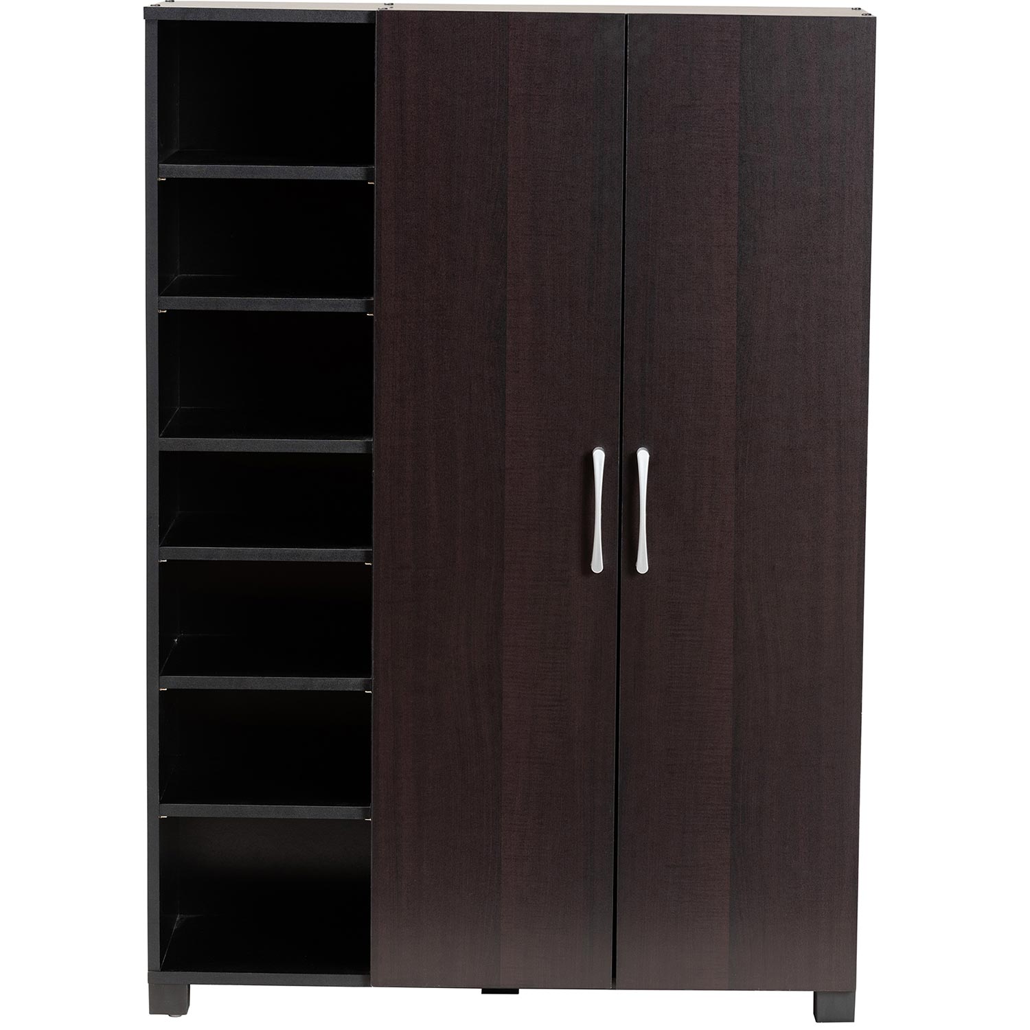 Baxton SESC296-Wenge-Shoe Cabinet Marine Shoe Storage Cabinet w/ Shelves in Two Tone Wenge & Black Finish