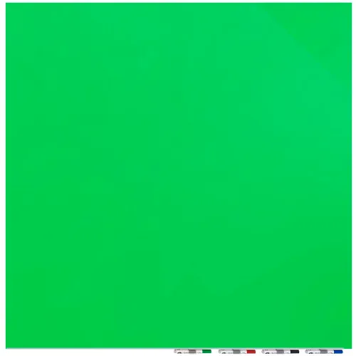Aria 4'H x 4'W Magnetic Low Profile 1/4" Glass Whiteboard - Green - 4 Rare Earth Magnets, 4 Markers and Eraser