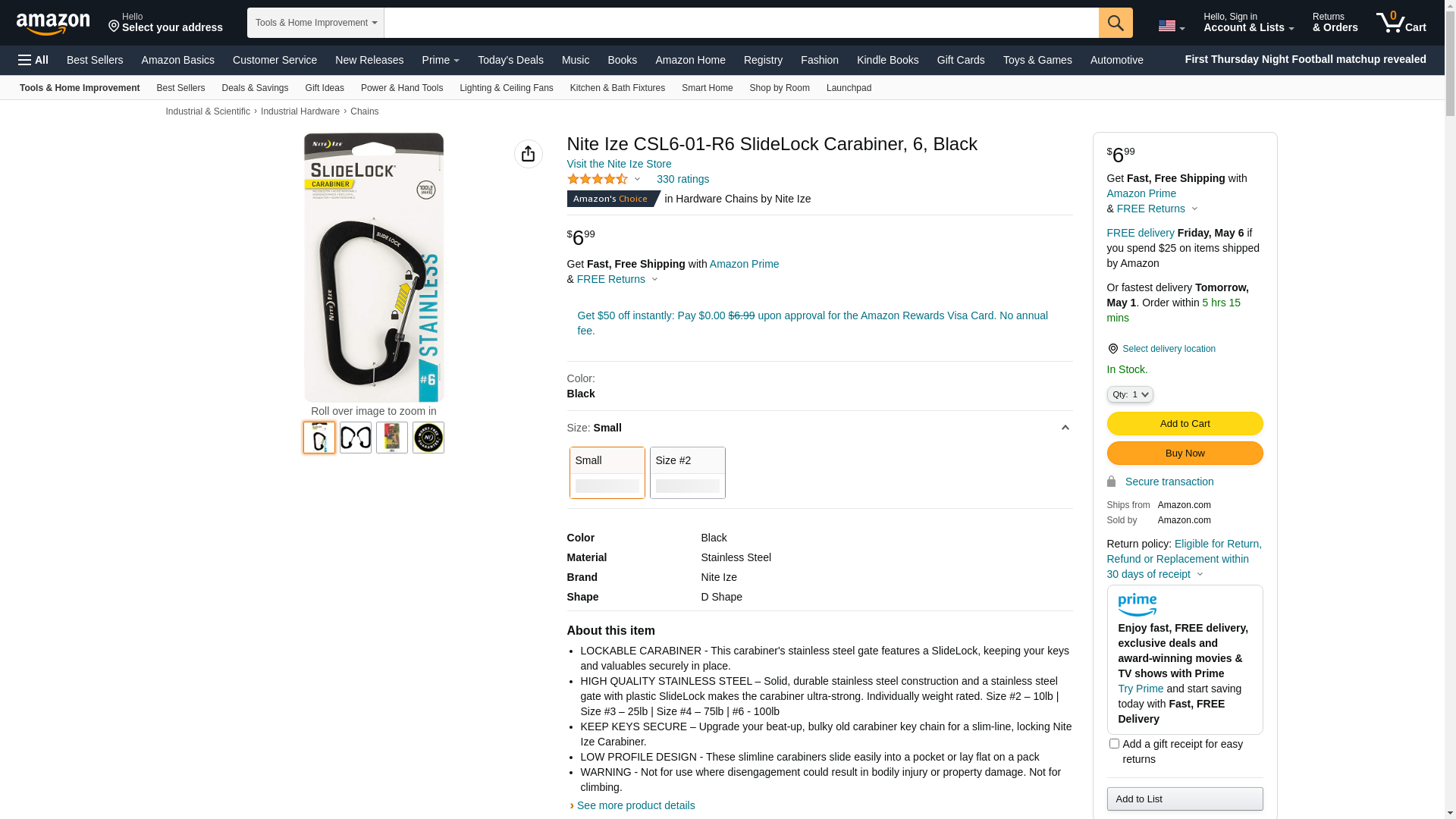 Nite Ize SlideLock Carabiner Stainless Steel, Size #6, Black