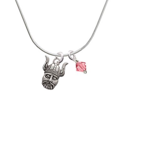 Silver Tone Small Viking - Mascot - Pink Bicone Crystal Necklace. Silver Tone, hand enameled charms. Charm size is approx. 0.66 x 0.47 x 0.13 inches (HxWxD) including loop. 18 Inch Snake Chain Necklace with a Lobster Claw Clasp. Hand wrapped crystal bicone is approx: 6mm. We use Swarovski Crystallized Elements. Available in many colors. We are a family owned company in the U.S.A. since 1977. PLEASE NOTE: Our products are lead safe, but are not intended for children 14 years and younger.