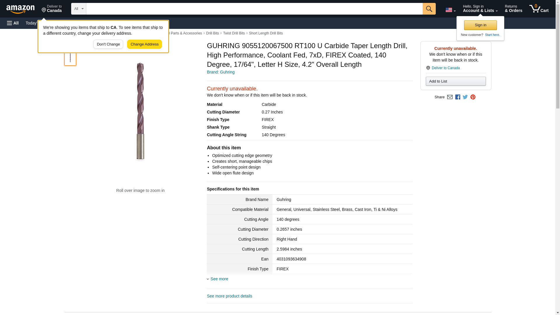 Guhring 9055120067500 - Guhring 9055120067500 Taper Length Drill Bit: 0.2656" Dia, 140 ° -Best Prices Shop National Supply Network!