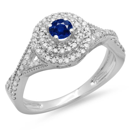 This lovely engagement Bridal Ring feature blue sapphire and white diamonds in halo setting. All stones are sparkling and 100% natural. All our products with FREE gift box and 100% Satisfaction guarantee. Blue Sapphire is very dark blue in color - Color varies from photo. SKU # DR2639-2323