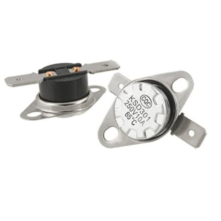 <ul> <li>Action Temperature : 65 Celsius Degree;Voltage : 10A, AC250V;Circuit Resistance : <50 Mohm</li> <li>Insulation resistance : 100 Mohm;Size(Each) : 3.4 x 1.2cm/1.3" x 0.47"(L*H)</li> <li>Material : Metal, Plastic;Color : Black, Silver Tone</li> <li>Net Weight : 24g;Package Content : 5 x Temperature Switch Themostat</li> </ul>
