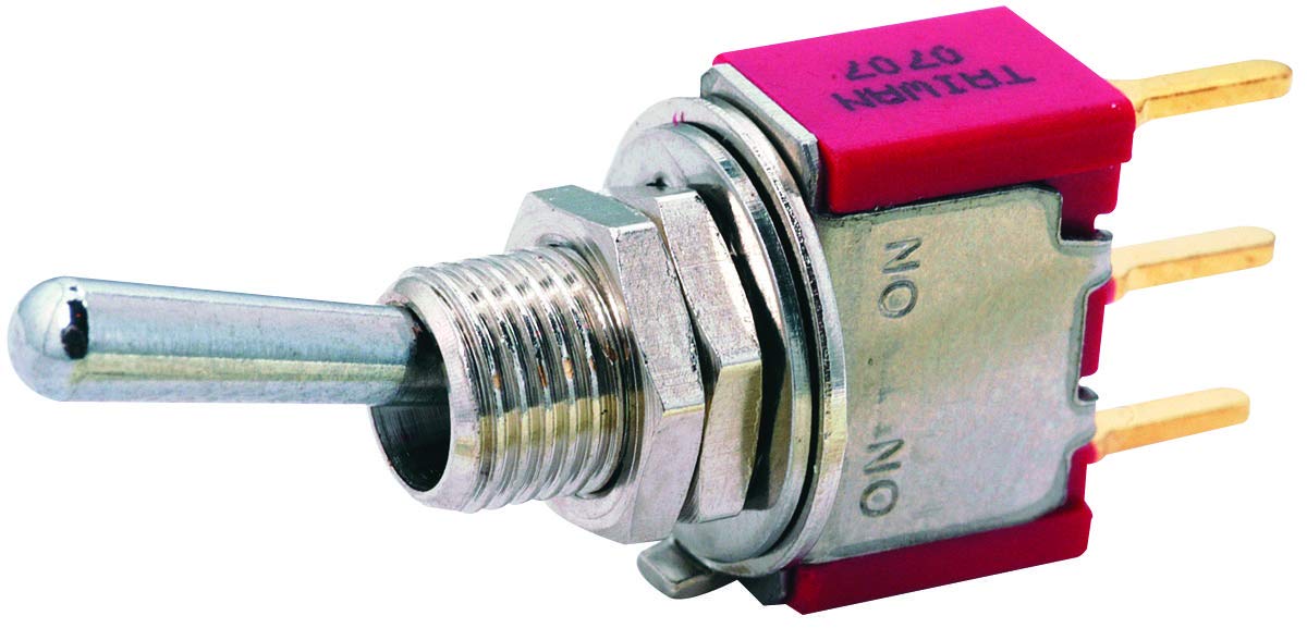 - Price For: Each Contact Configuration: SPDT Switch Operation: On-On Contact Voltage AC Nom: 250V Contact Voltage DC Nom: 28V Contact Current Max: 5A Switch Terminals: Solder Actuator Style: Bat Circuitry: SPDT RoHS Compliant: Yes
