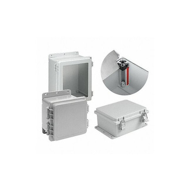 <br /><br /> Item - Electrical Enclosure: Enclosure<br /> Enclosure NEMA Rating: 12,13,4,4X<br /> Metallic / Non-Metallic: Non-Metallic<br /> Material of Enclosure: Non-Glass Filed Polyester<br /> Nominal Enclosure Depth: 6"<br /> Nominal Enclosure Height: 12"<br /> Nominal Enclosure Width: 10"<br /> Enclosure Cover Type: Hinged<br /> Solid / Clear Cover: Solid<br /> Closure Method: Quick Release Latch<br /> Knockouts: No<br /> Finish: RAL 7035 Textured Polyester Powder<br /> Color: Light Gray<br /> Depth: 6.35"<br /> Enclosure Cover Features: Quick Release Latch<br /> Gasket: Polyurethane<br /> Height: 12.08"<br /> Includes: Mounting Feet, Clamps<br /> Interior Panel: 32FR75<br /> IP Rating: 66<br /> Mounting: Wall<br /> Series: PCR<br /> Standards: UL Listed, CSA Certified, IEC, cUL<br /> Width: 10.08"