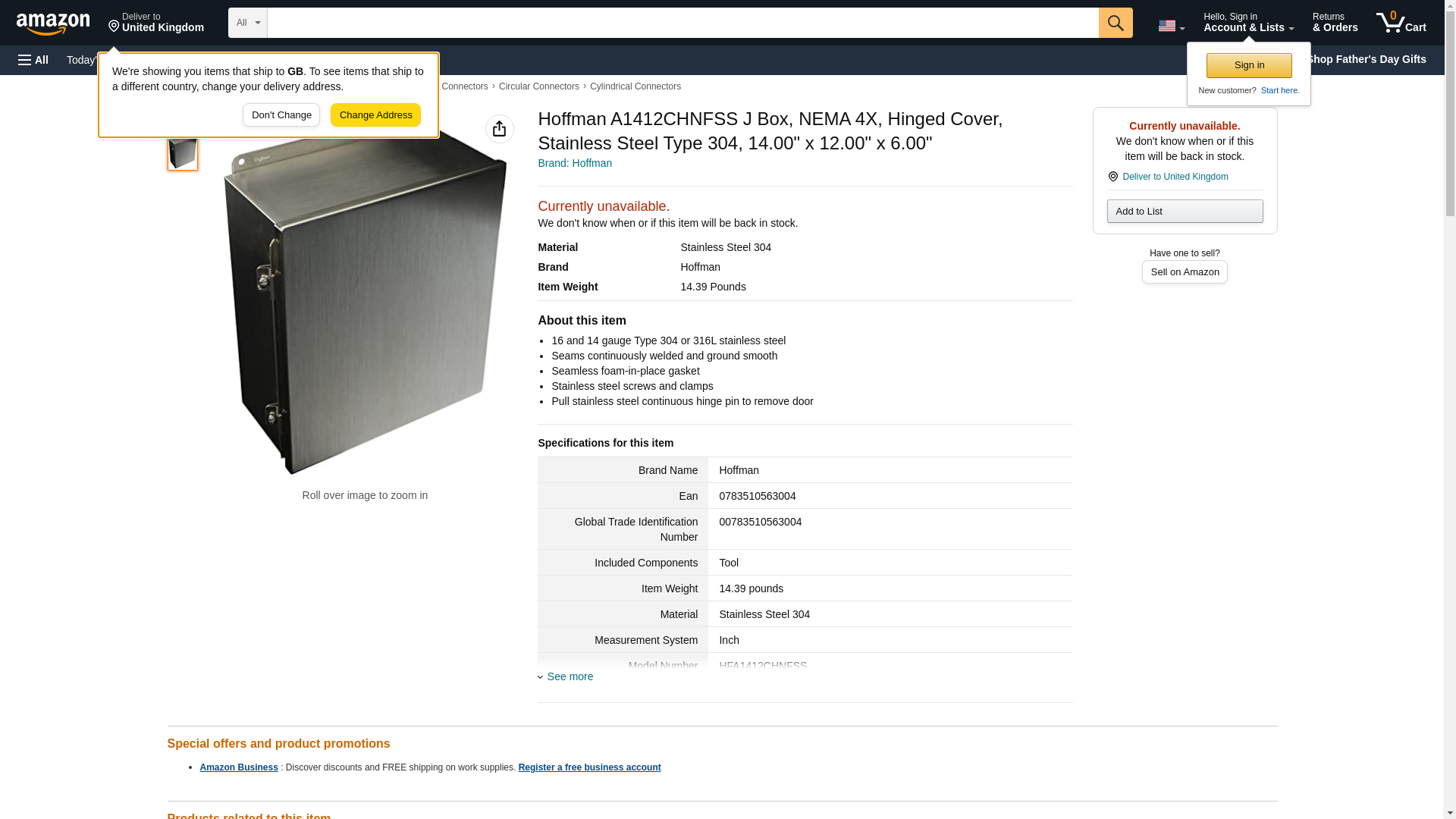 Part Number: 783510563004 <br> Part: Hoffman A1412CHNFSS Junction Box, NEMA 4X, Hinged, Stainless Steel, 14" x 12" x 6" <br> Junction Box, Type 4X, Hinged Cover, Size/Dims: 14" x 12" x 6", Material/Finish: SS Type 304 <br> Product Height:14 in <br> Material:Stainless, Stainless Steel, Steel <br> IP/NEMA Rating:IP66, 3, 4X <br> Type:Hinged Cover, Junction Box <br> Product Width:12 in <br> Product Depth:6 in <br> Also known as: 783510563004, Stainless Steel Enclosure;Hinge Cover box;pull box;Hinge Cover;corrosion resistant;Nema 4X, HOFA1412CHNFSS, Hoffman, A1412CHNFSS, Junction Boxes - Hinge Cover (Continuous), Stainless Steel Enclosures, Enclosures - Corrosion Resistant, Boxes, Enclosures <br> Equivalent to: <ul><li>Hoffman</li><li>A1412CHNFSS</li><li>01783510563003</li><li>Hoffman</li><li>A1412CHNFSS</li><li>783510563004</li></ul>