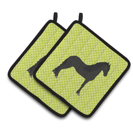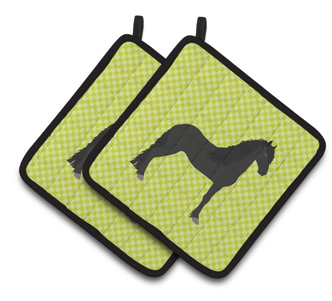 Caroline's Treasures BB7741PTHD Friesian Horse Green Pair of Pot Holders , 7.5HX7.5W, Multicolor