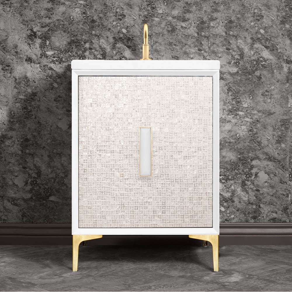 Linkasink - VAN24W-016SB-01 - MOTHER OF PEARL with 8'' Artisan Glass Prism Hardware 24'' Wide Vanity, White, Satin Brass Hardware, 24'' x 22'' x 33.5'' (without vanity top)