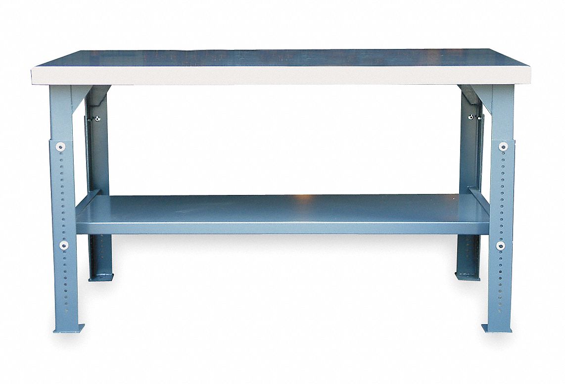 Workbench, Stainless Steel, 30 in Depth, 30 in to 40 in Height, 48 in Width, 5500 lb Load Capacity - Grainger