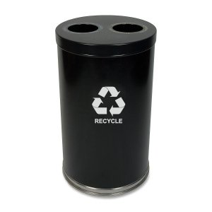 Witt Industries 18RTBK-2H Steel 36-Gallon 2 Opening Recycling Container with 2 Plastic Liners, Legend "Recycle", Round, 18" Diameter x 33" Height, Black