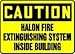 CAUTION HALON FIRE EXTINGUISHING SYSTEM INSIDE BUILDING 10" x 14" Plastic Sign