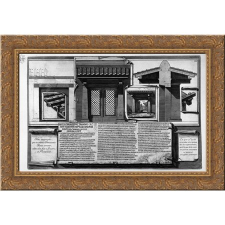 Construction details and an inscription found in the Farnese Gardens 24x19 Gold Ornate Wood Framed Canvas Art by Piranesi, Giovanni Battista