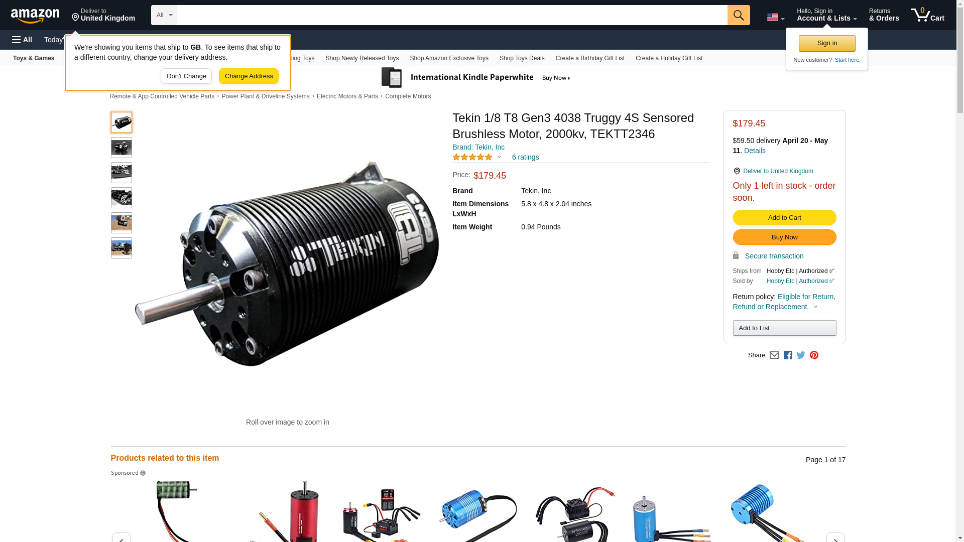 Tekin 1/8T8gen3 4038 BL Motor 2000kv Sensored/Sensorless TEKTT2346 Electric Motors & Accessories